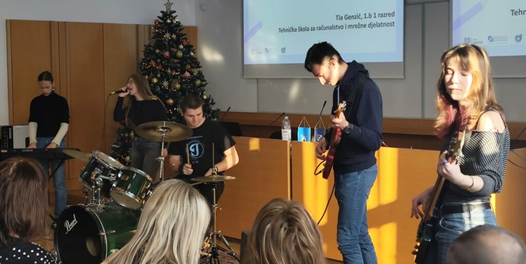 U petak 12.12.2025. školski bend “Program” uspješno je nasupio u glazbenom dijelu svečane dodjele nagrada natječaja Nastavnog zavoda za javno zdravstvo “Dr. A. Štampar” – “Škola bez ovisnosti – grad bez ovisnosti”.