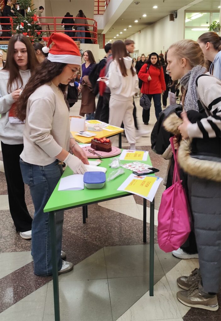 U srijedu 17.12. 2025., pod nazivom Slatki dan, započela je manifestacija Božićni tjedan u Prvoj. Tom prilikom, održano je nagradno natjecanje u božićnim slasticama i humanitarna prodaja slastica. Ukupno je prijavljeno 13 slastica, a žiri u sastavu prof. M. Matušan, prof. I. Deković i učenik 3.e Stjepan Šalinović, kao najbolje odabrao je “Ferrero tortu” učenice 3.e Marije Bekić, dok drugu nagradu dijele “Miris ljubavi” učenice 4.c Nives Mesić, “Zimski duet” prof. K. Vladušić i “Olafova torta” gđe Mišel Movre iz učeničke referade. Pobjednici su nagrađeni simboličnim nagradama, a svim ostalim sudionicima dodijeljene su zahvalnice.