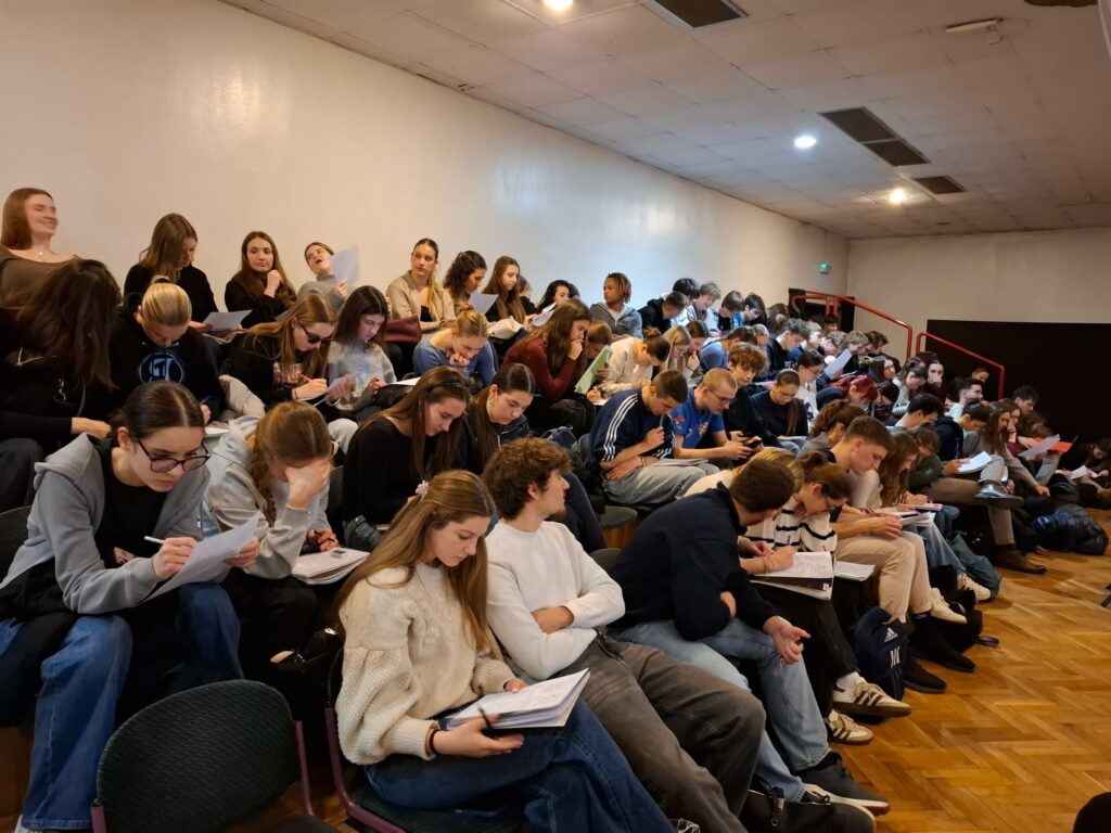 U sklopu programa poticanja darovitosti, u četvrtak 19. veljače 2026., našu su školu posjetili članovi Mense -Anja Sossich, Andrej Grgić i Krešimir Kružić (koji je naš bivši učenik) te održali zanimljivo i inspirativno predavanje o tome što je Mensa i čime se bave njeni članovi, što je inteligencija, a što darovitost. Pokazali su primjere zadataka kojima se testira inteligencija, a zatim prisutnima, kojih je bilo preko sto, dali listić sa zadatcima, uz napomenu da će prvi koji pošalje točna rješenja dobiti besplatno testiranje za učlanjenje u Mensu. Pristiglo im je puno točnih odgovora, a najbrži je bio Borko Novak. Poziv sve zainteresiranima da se prijave za testiranje koje Mensa organizira 7. ožujka 2026.