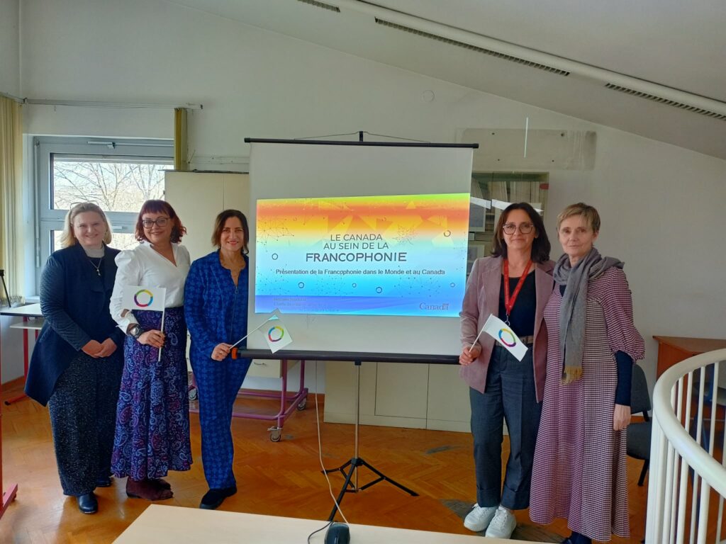 Dana 24.3.2026. našu školu posjetila je kanadska konzulica, gospođa Nathalie Niedoba u pratnji suradnice gospođe Ide Mahečić Bajović. Ovaj posjet dio je projekta obilježavanja mjeseca Frankofonije. Nakon prijema gospođe Niedoba od strane ravnateljice, u knjižnici naše škole gospođa Niedoba održala je prezentaciju o Frankofoniji, njezinim vrijednostima te ulozi Kanade u toj brojnoj organizaciji. Svakako je najvažniji cilj ovog projekta prikazati učenicima internacionalnost francuskog jezika što je kanadska konzulica i učinila tijekom zanimljive i nadasve interaktivne prezentacije.