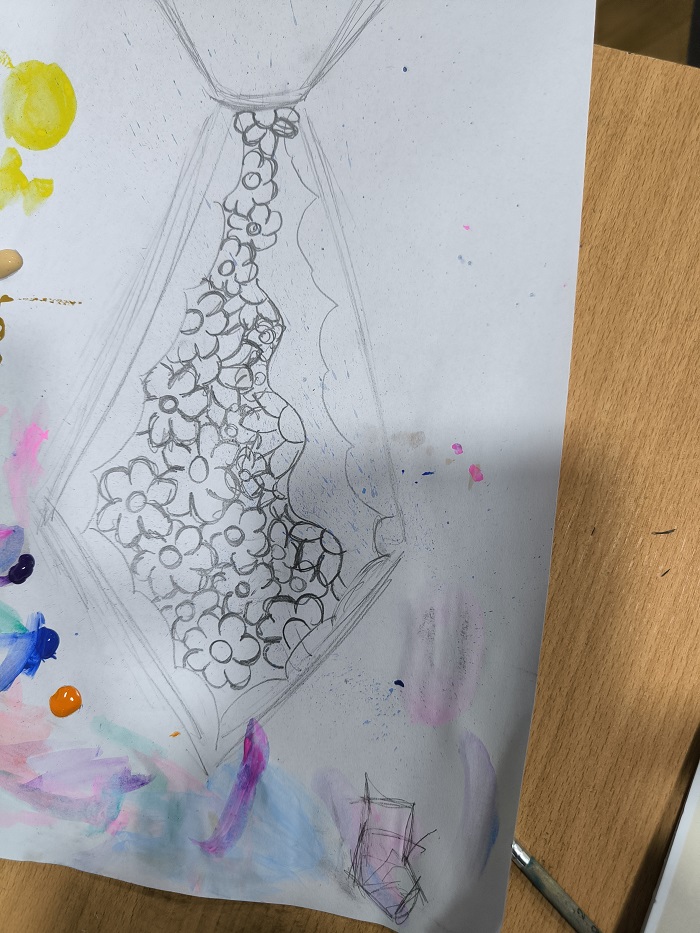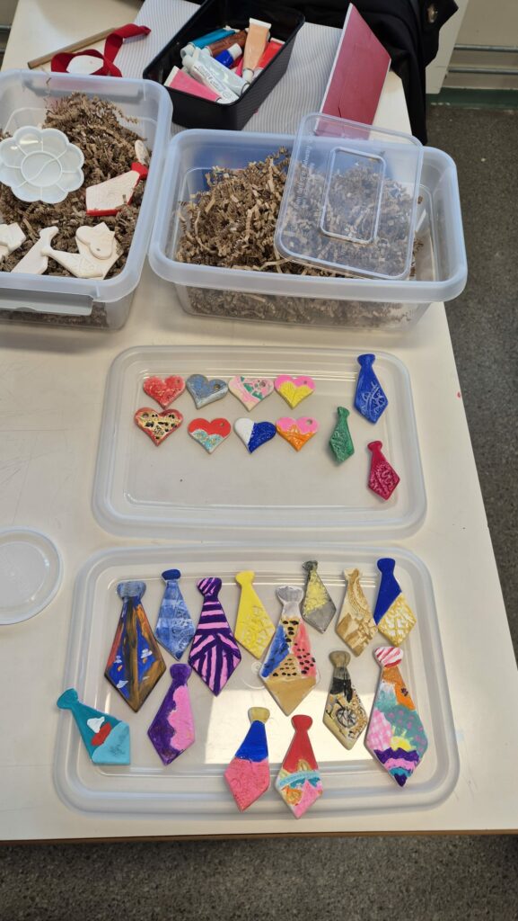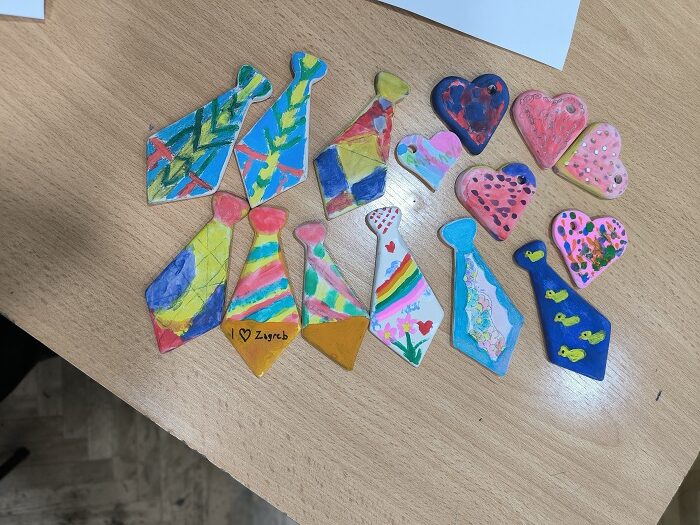 Prilikom susreta održane su dvije dvosatne kreativne radionice na kojima su učenici saznali o tradicijskim uzorcima i ornamentima koji se pojavljuju u prošlosti Hrvata. Nakon teorije učenici su oslikavali već pripremljene keramičke predmete u obliku kravate i srca. Na svim predmetima je otisnut uzorak čipke (paške, lepoglavske ili dobrotske). Posebnost ovih predmeta je što smo pomoću 3D printera izradili šablone koje stvaraju uzorke kao da smo postavili čipku na predmet.