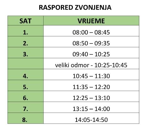 Raspored zvonjenja šk. god. 2024./2025.